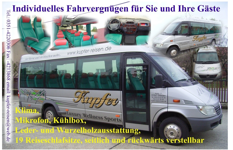 Individuelle Programme und Fahrten für kleine Gruppen, entweder mit unserem Extralangen 9-Sitzer Ford-Transit oder einem unserer MB Sprinter Midibusse für Vereine, Familien oder Firmen, für Veranstaltungs-, Rund- oder Transferfahrten (zur Bahn oder zum Schiff oder zum Flugzeug)!